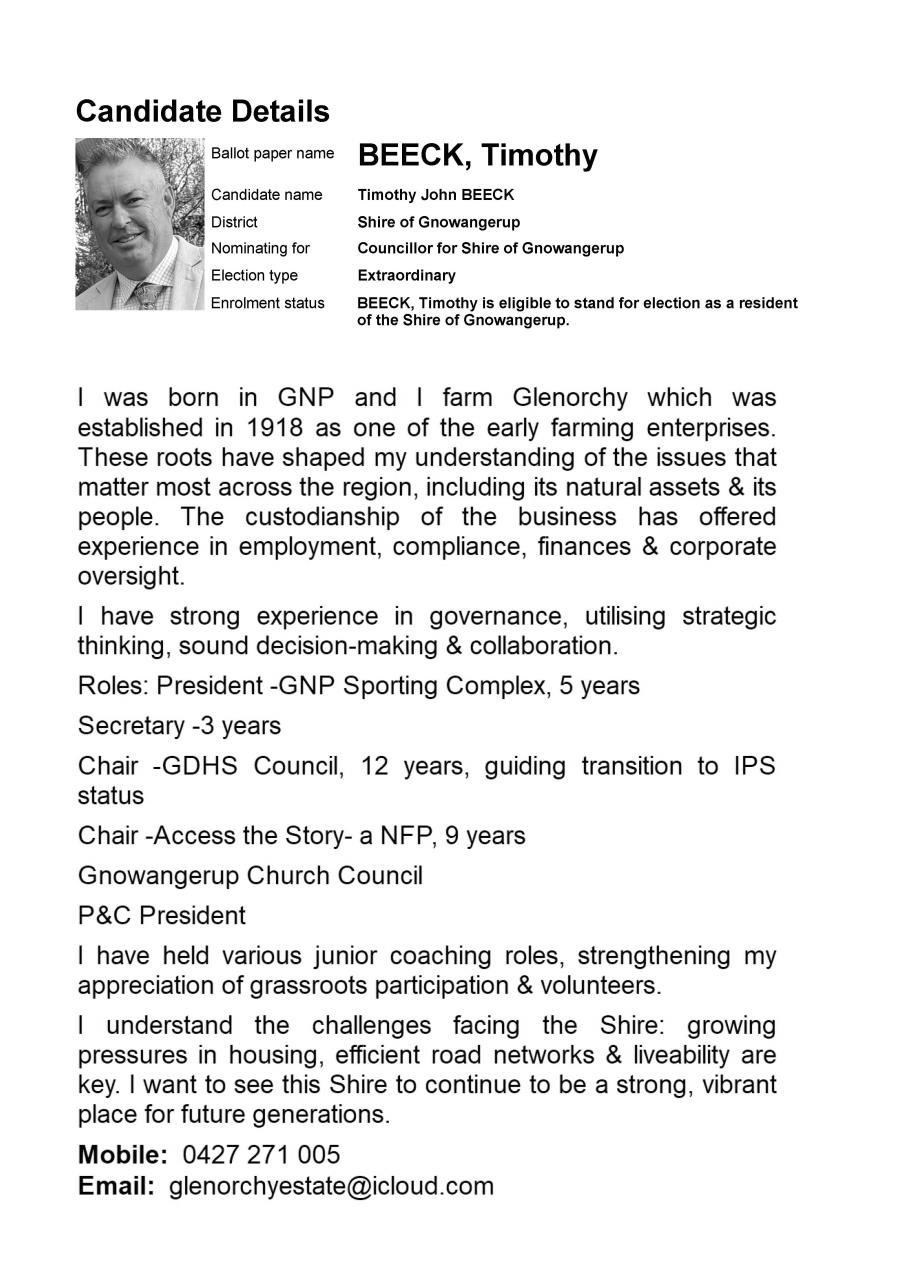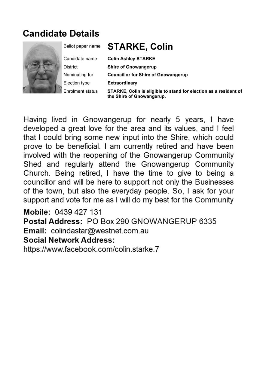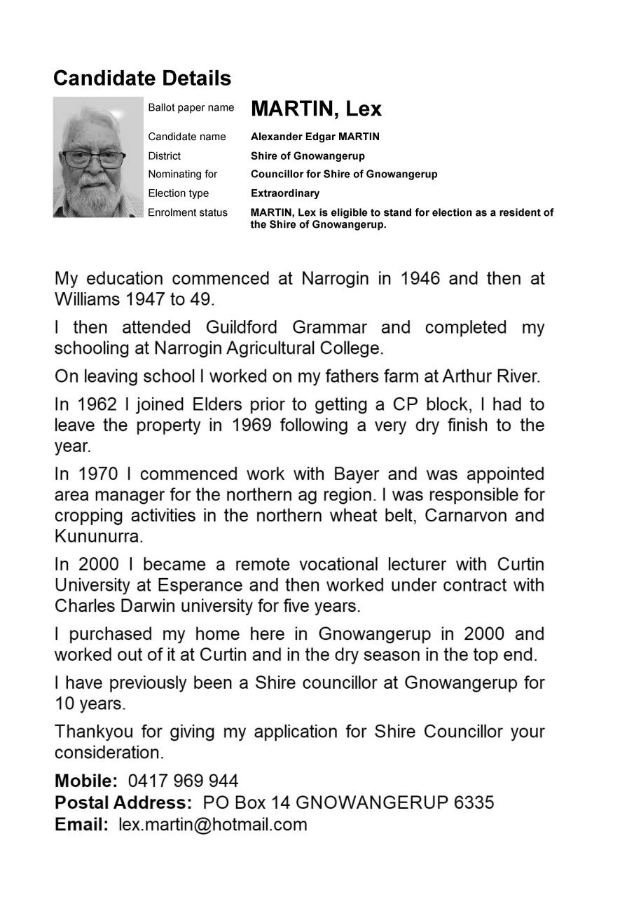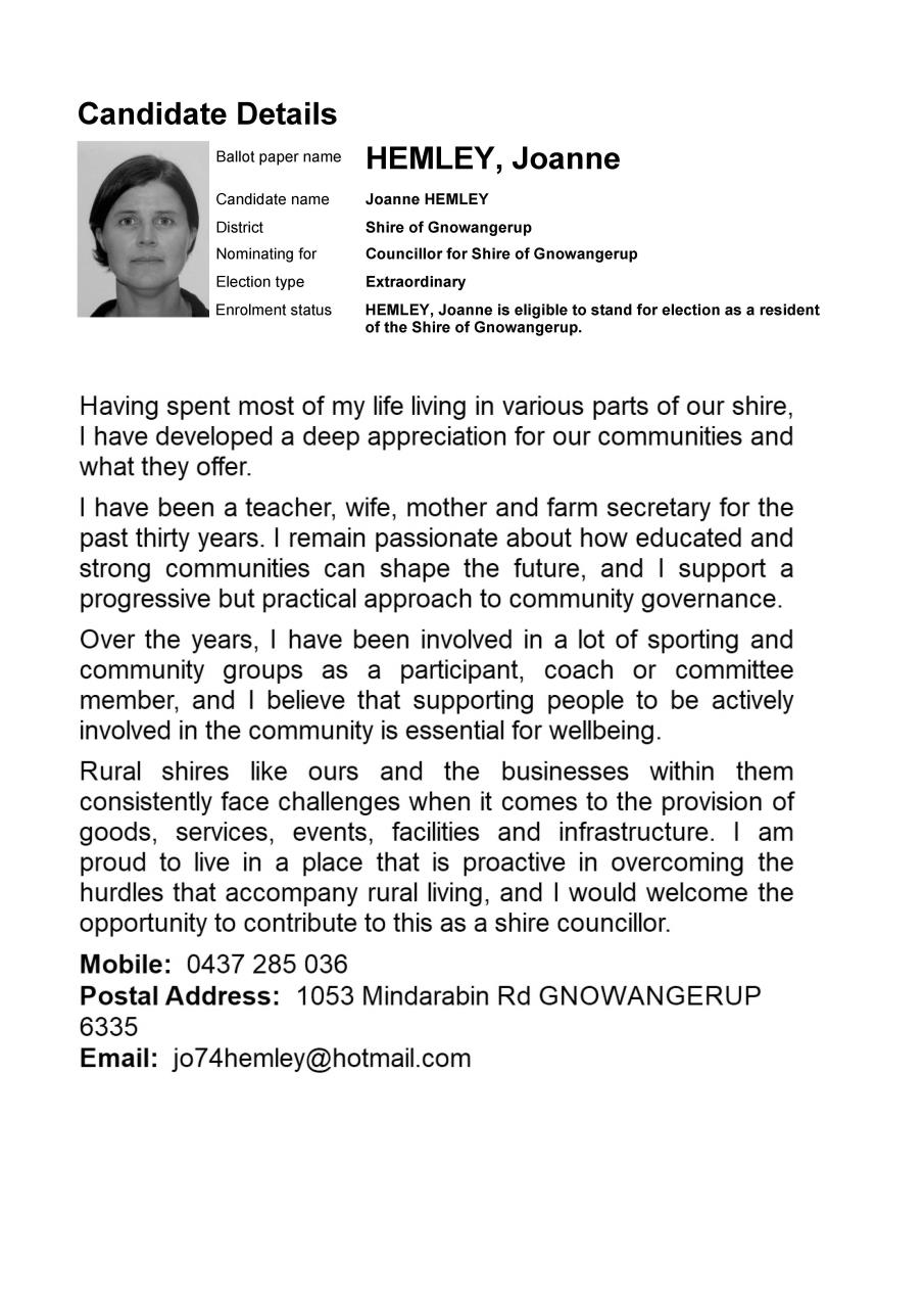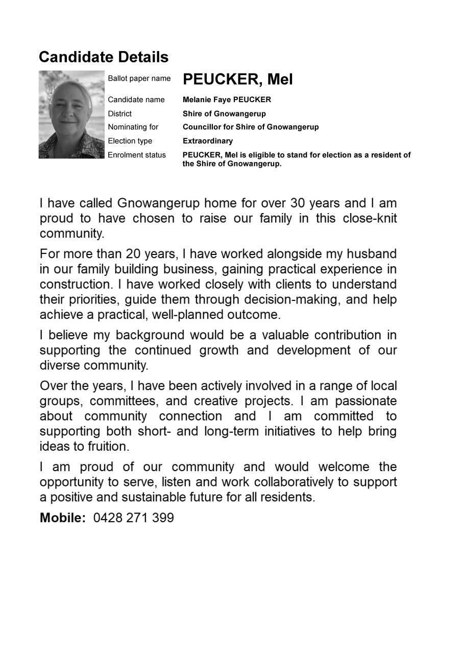 The Shire thanks all nominees for putting themselves forward to represent the community. Further election information will be available on the Shire’s website.