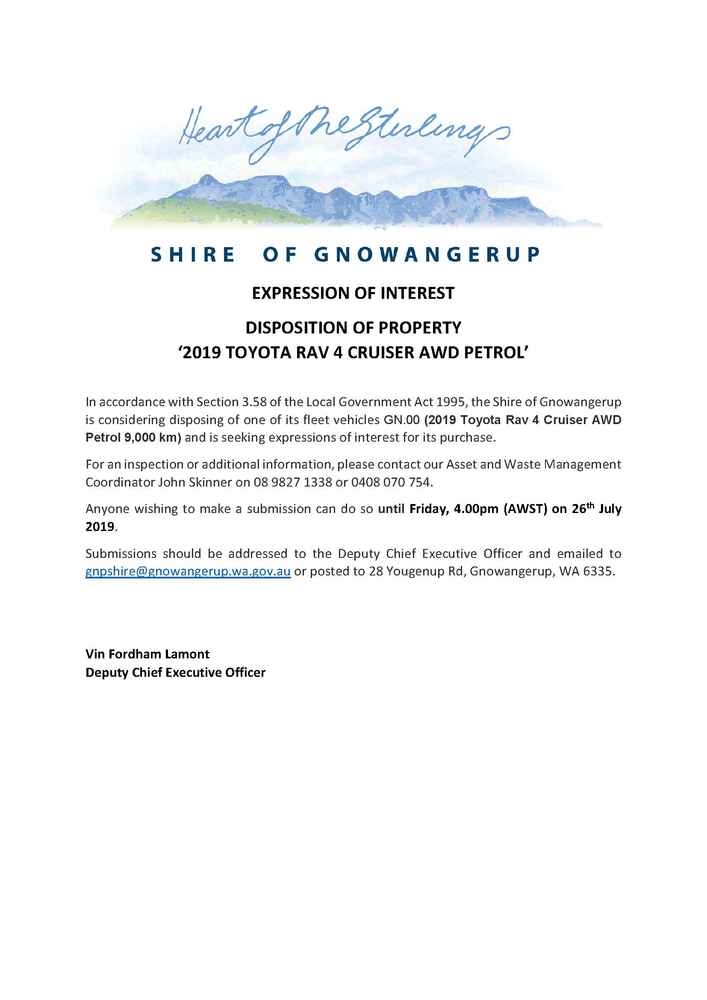 Expression Of Interest : Disposition 2019 Toyota Rav4 Cruiser