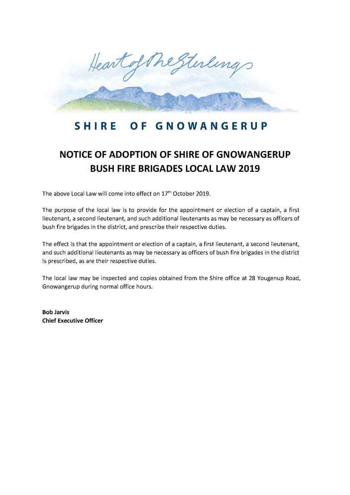 Notice Of Adoption Bush Fire Brigades Local Law 2019