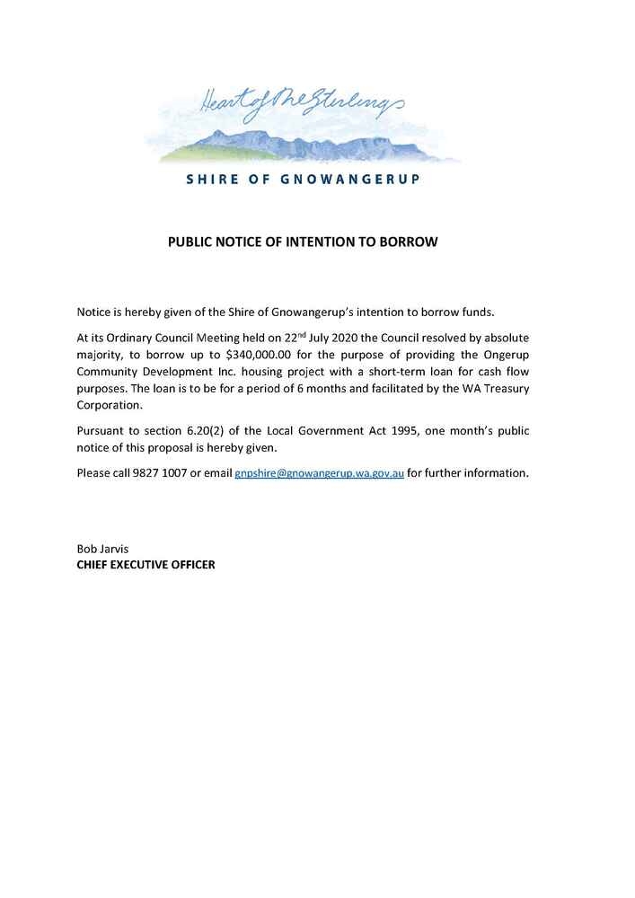 Public Notice Of Intention To Borrow