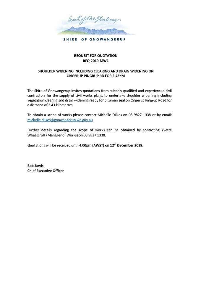 Request For Quotation - Shoulder Widening Ongerup Pingrup Rd