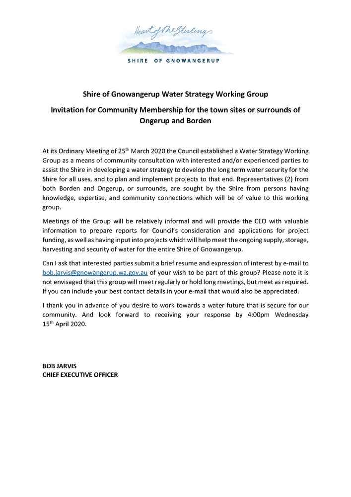 Shire Of Gnowangerup Water Strategy Working Group